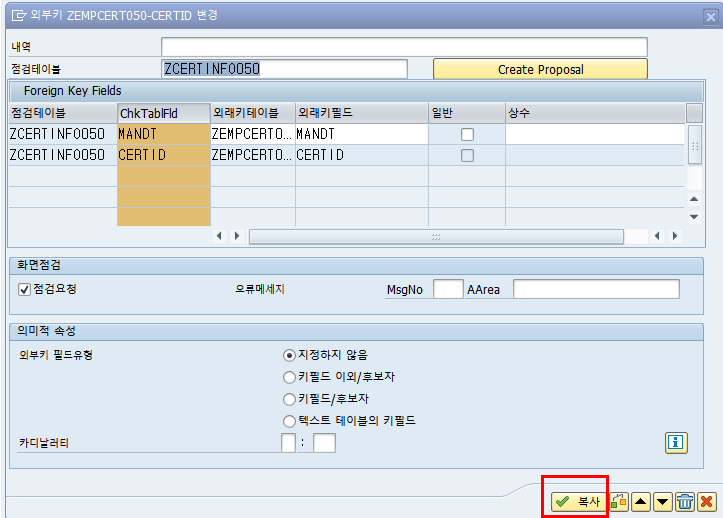 - ABAP 영역에서 사용하는 Foreign Key는 ABAP Dictionary에만 정의되어있고,