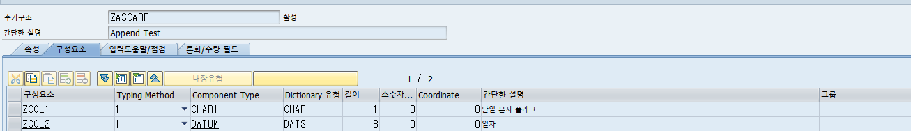 SCARR 표준 테이블(Y 또는 Z로 시작하지 않는 테이블 전부 표준 테이블)에 Append Structure 기능을 이용해