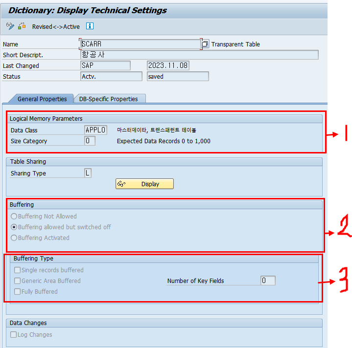 | Buffering Activated | 데이터 변경이 자주 발생하지 않고, Read 접근이 많은 테이블에 세팅 예를 들어, 클라이언트 테이블 T000은 시스텡을 처음 설치한 후 변경할 일이 거의 없으며, 클라이언트가 추가되더라도 데이터 Size가 적기 때문에 Fully buffered로 설정되어 있다. |