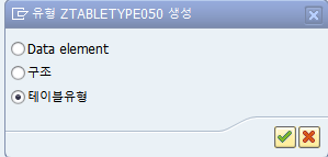 1) Data Type 필드에 Table Type 이름을 입력하고 생성 버튼 클릭