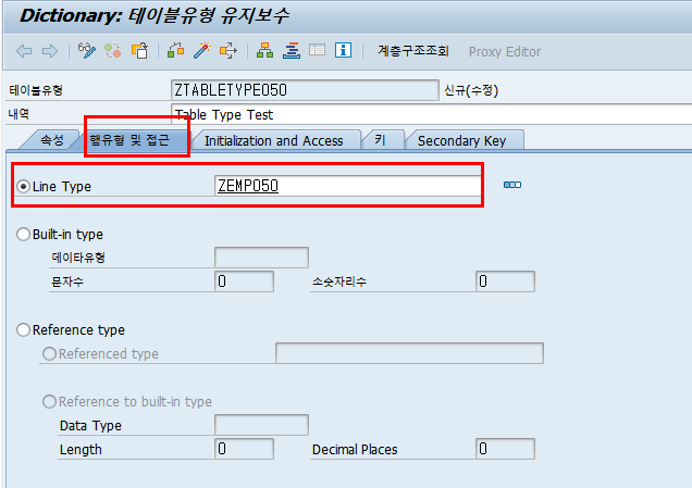 3) Line Type 탭에서 이미 존재하는 타입을 참조하고자 하는 경우 Line Type 라디오 버튼을 클릭 후 해당 하는 테이블 지정