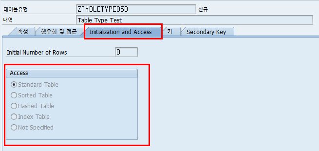 | Standard Table | 일반적으로 Index 접근이 사용되며, Key를 이용하게 되면 순차적 접근을 통해 인터널 테이블에 접근한다. 접근 속도는 인터널 테이블의 라인 수에 따라 비례적으로 증가한다. |