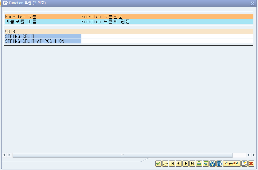 T-CODE:SE37(Function Builder)에서 문자열을 두 개로 나누는 Function Module을 검색해본다.