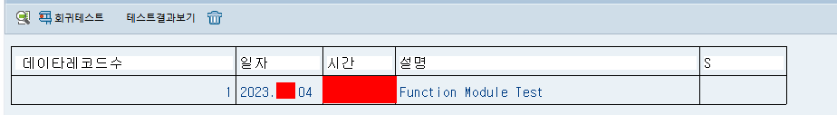 7) 아래 그림처럼 버튼을 클릭하면, Function Module에서 전달된 파라미터 값을
