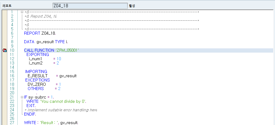 IF SY-SUBRC = 1. 구문은 Function을 호출할 때 나누기 값을 0으로 전달하면,