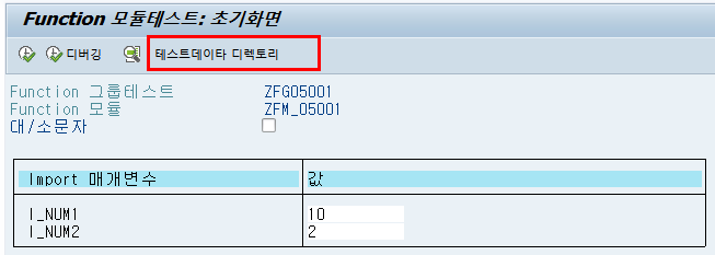 5) Function Module을 ABAP 프로그램에서 호출할 때의 값을 바로 Test data로 저장하는 방법에 대해서 추가로 알아본다.