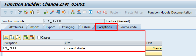 Exceptions Parameter를 사용하면 Function Module이 실행되는 동안 발생하는 예외사항을 처리할 수 있다.