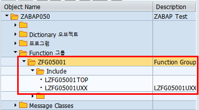 LZFG05001TOP  Include는 ZFG05001 Group 내의 모든 Function Module이