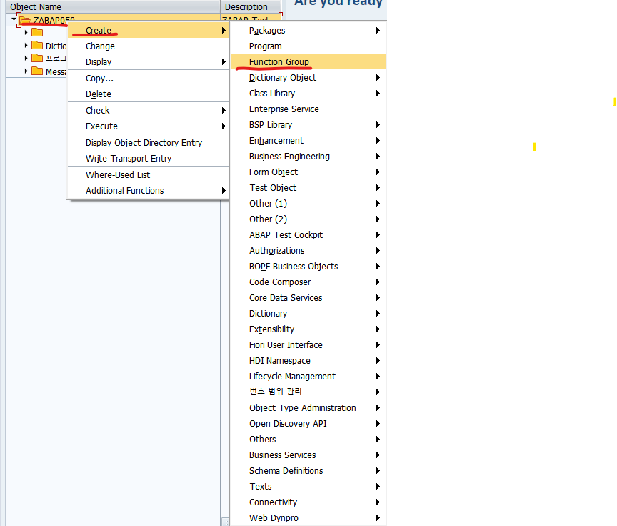 (※ 참고사항: T-CODE: SE80에서 Function Group 명을 입력한 다음 마우스 오른쪽 버튼을 이용하여