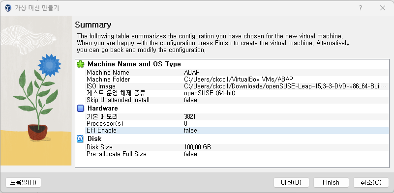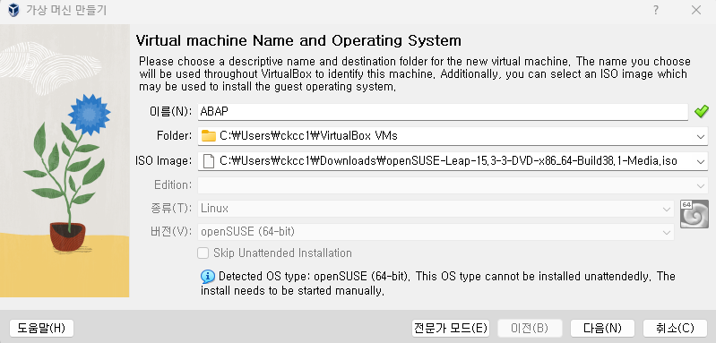 모든 파일 다운이 완료되었다면 Linux 중 한 종류인 OpenSUSE를 설치해야한다