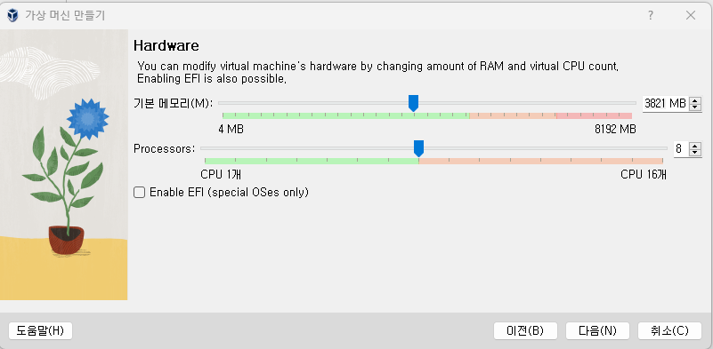 - 기본 메모리- 최대치의 절반 할당량 지정