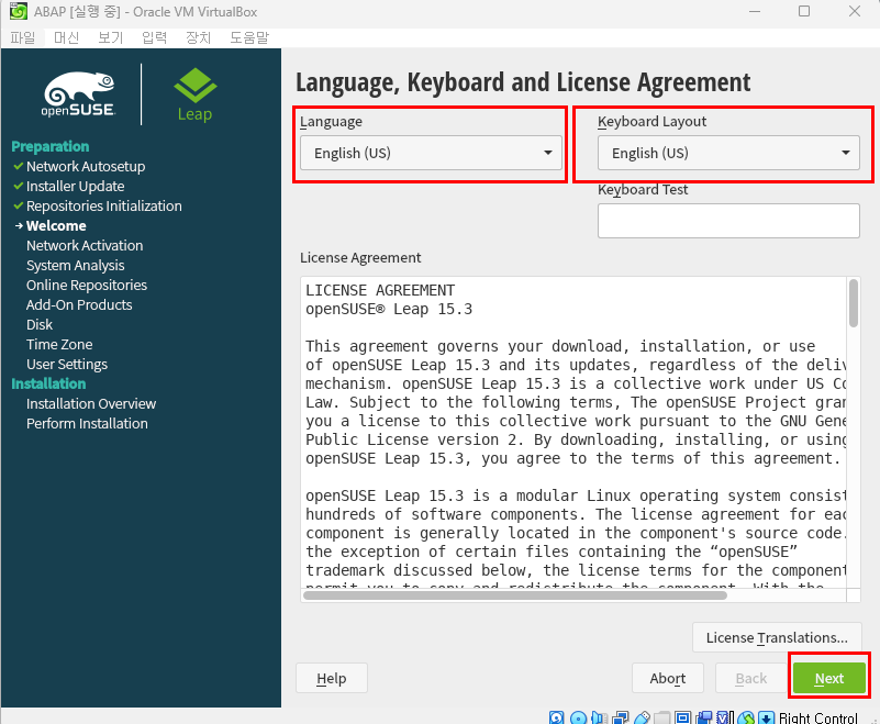 - Language 및 키보드는 English(US)로 세팅 해줌