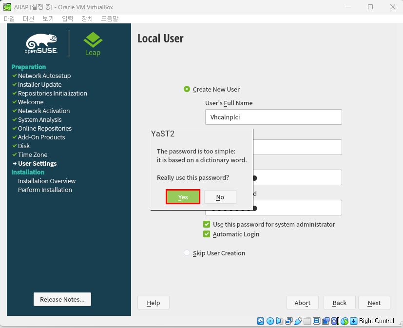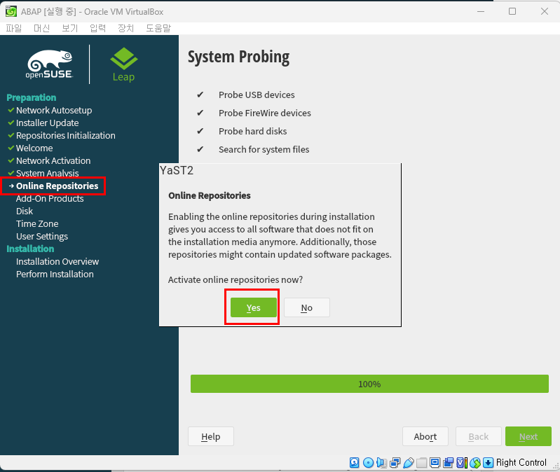 - 온라인 소프트웨어 업데이트 시 필요작업이어서 'Yes' 눌러줘야 함