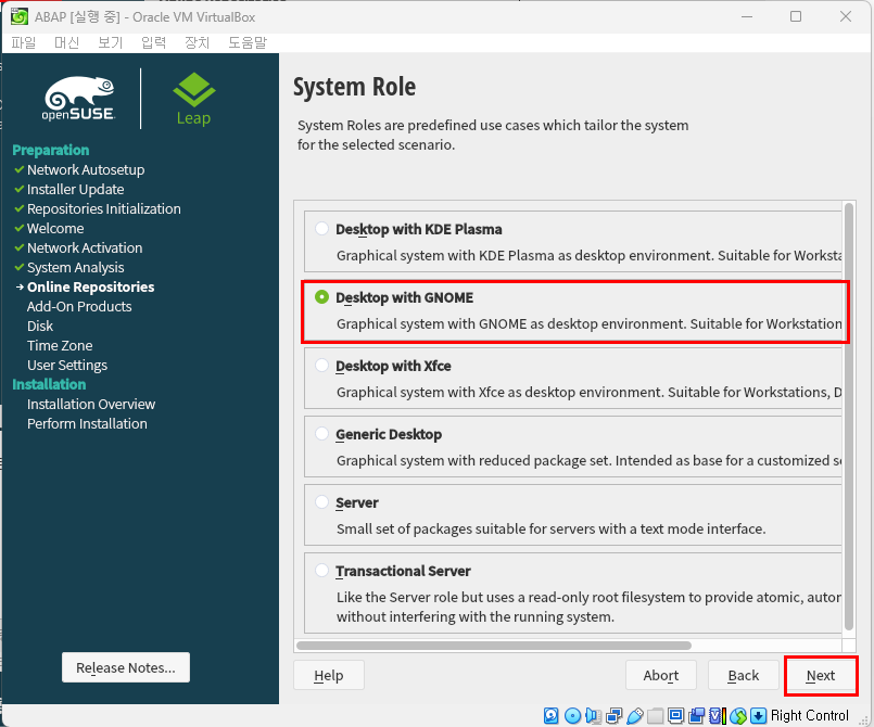 - Desktop with GNOME 클릭 후 'Next' 버튼 클릭