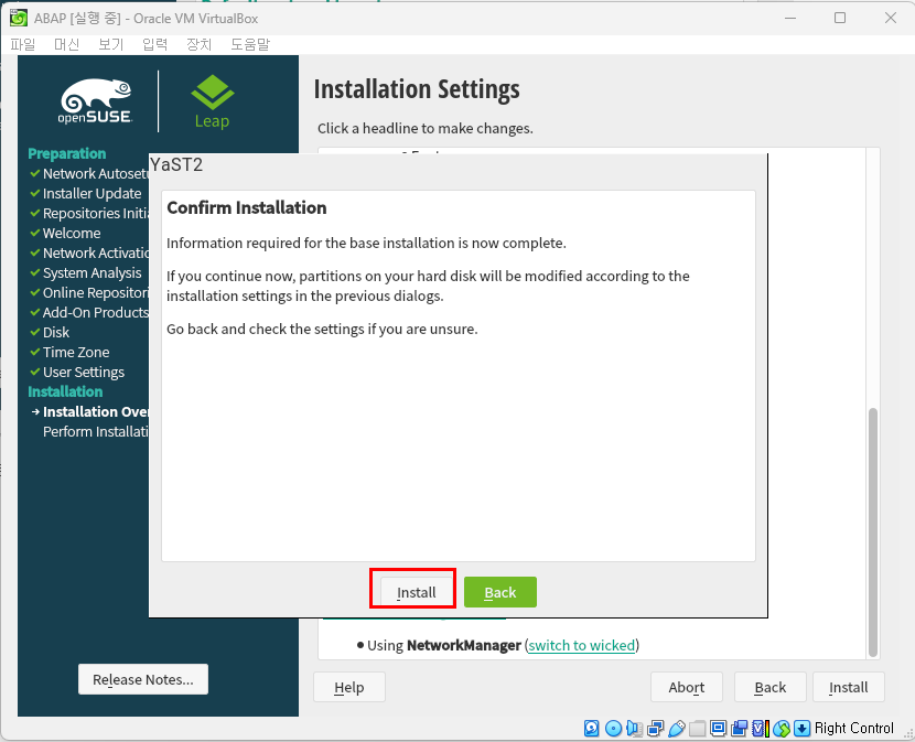 - 해당 그림대로 변경 후 'Install' 버튼 누르기